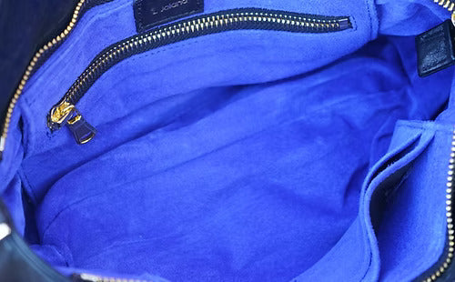 Gently buff light smudges with a soft cloth. For oils or spills: Blot immediately, never rub. A touch of cornstarch may be used to absorb excess. Apply leather cleanser gently and wipe with a dry cloth. Try in a hidden area first to test the results. Store in dust bag when not in use, away from direct sunlight and humidity.