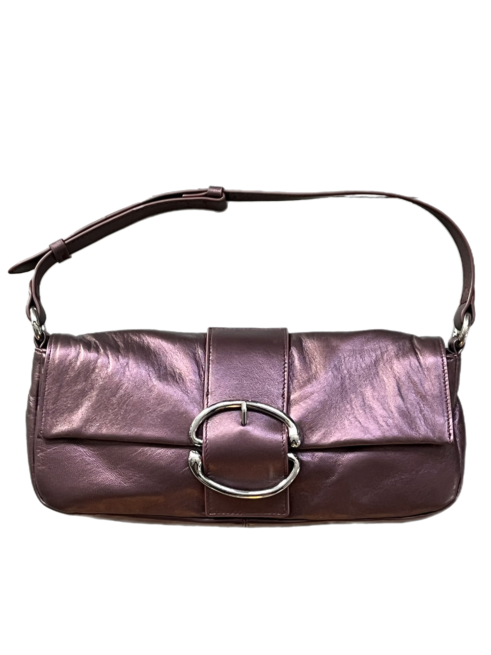 Our Electric Plum Liv Baguette captures the creative, mystical energy of the 60s in a bold, dreamy shade. Crafted from buttery soft pearlized leather with a plush suede interior and a removable strap that lets you switch effortlessly from day to night.