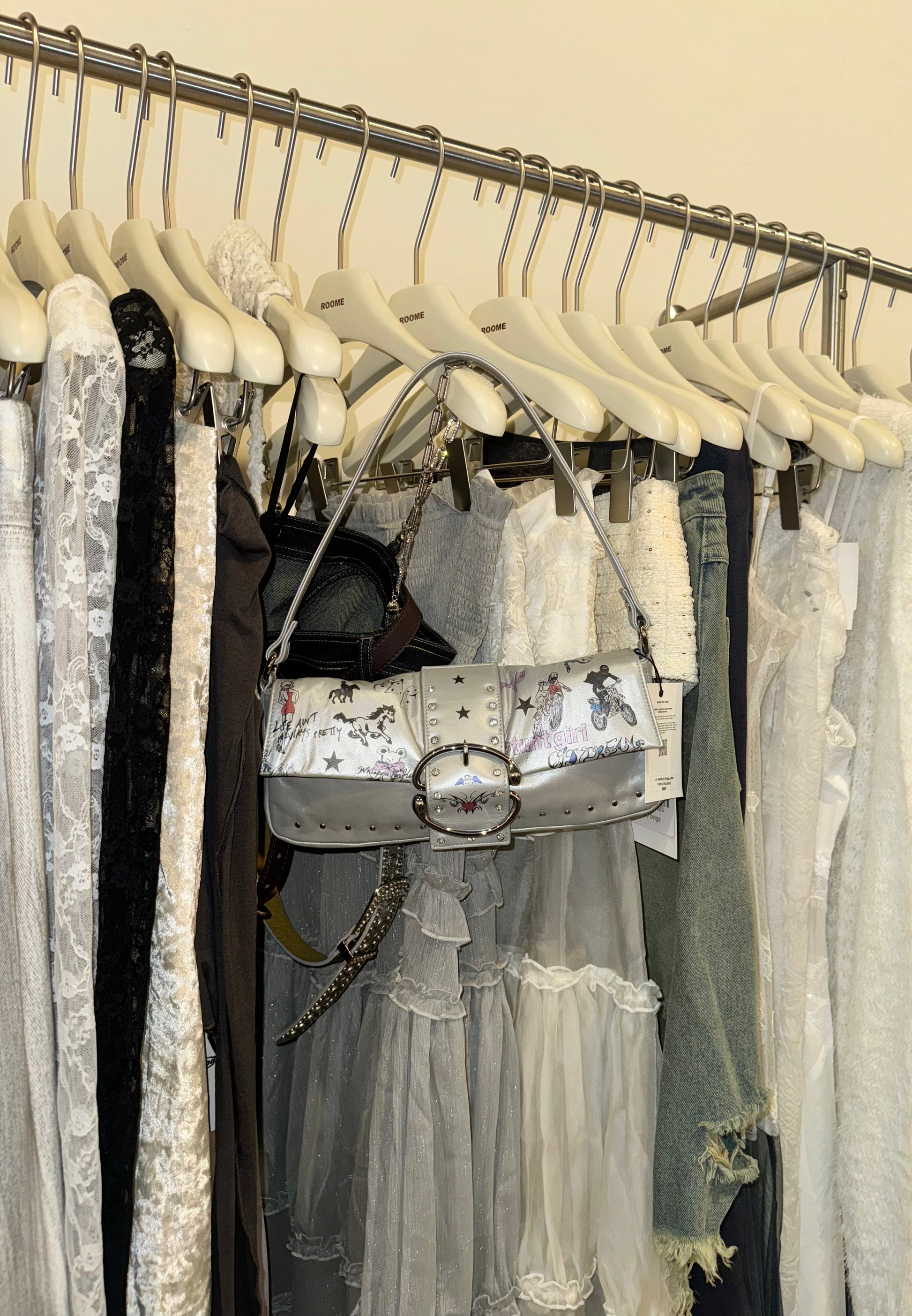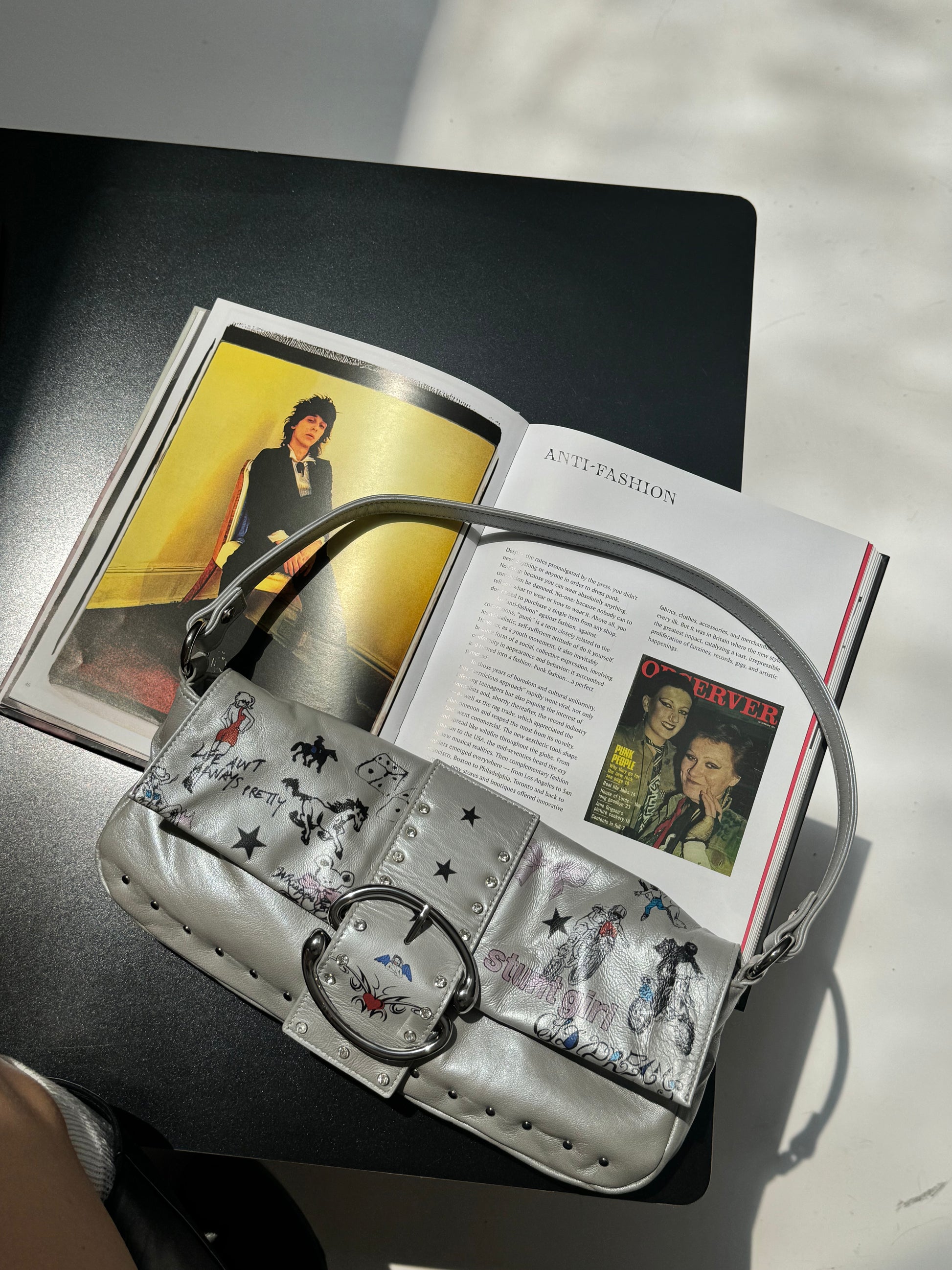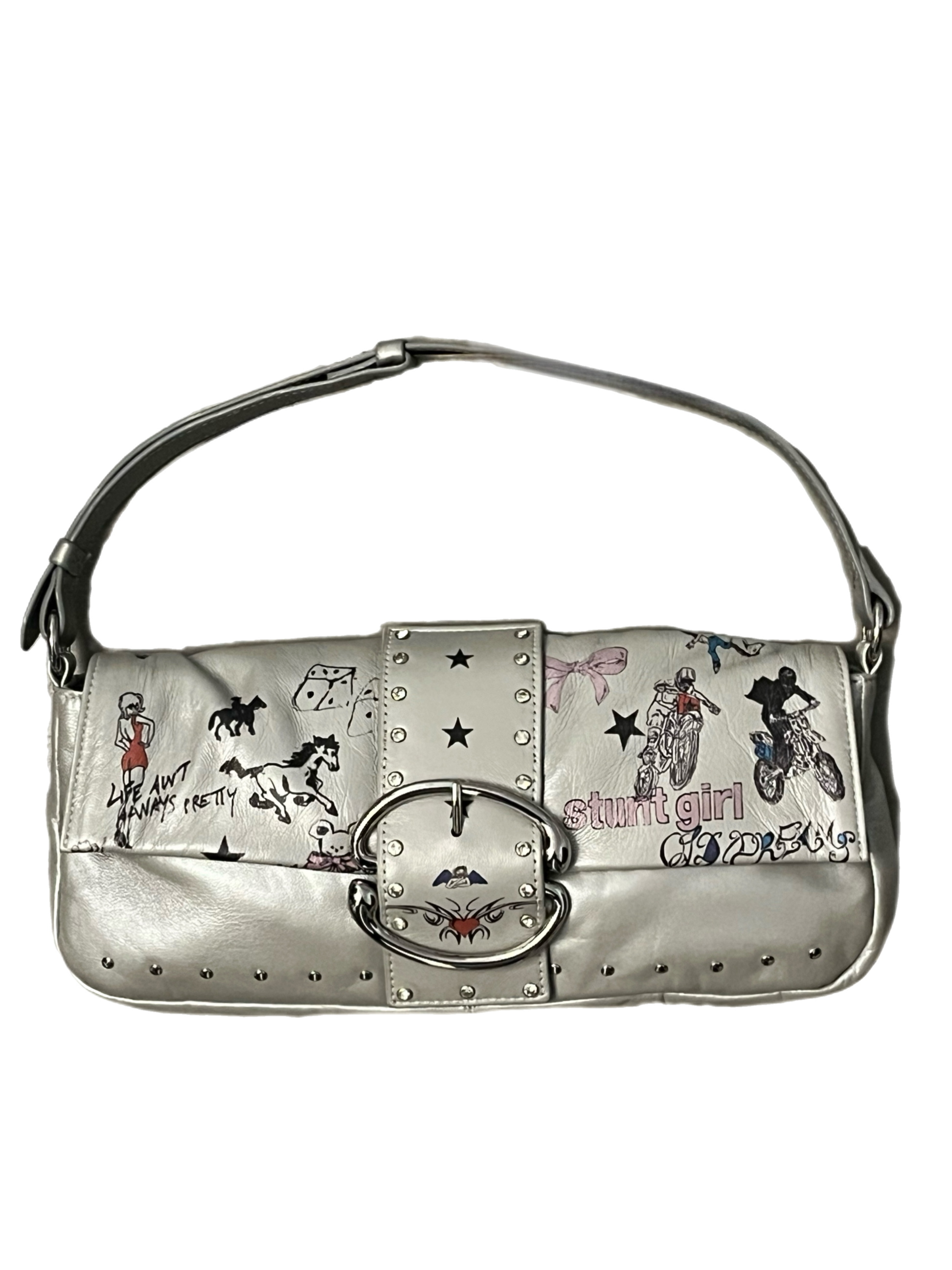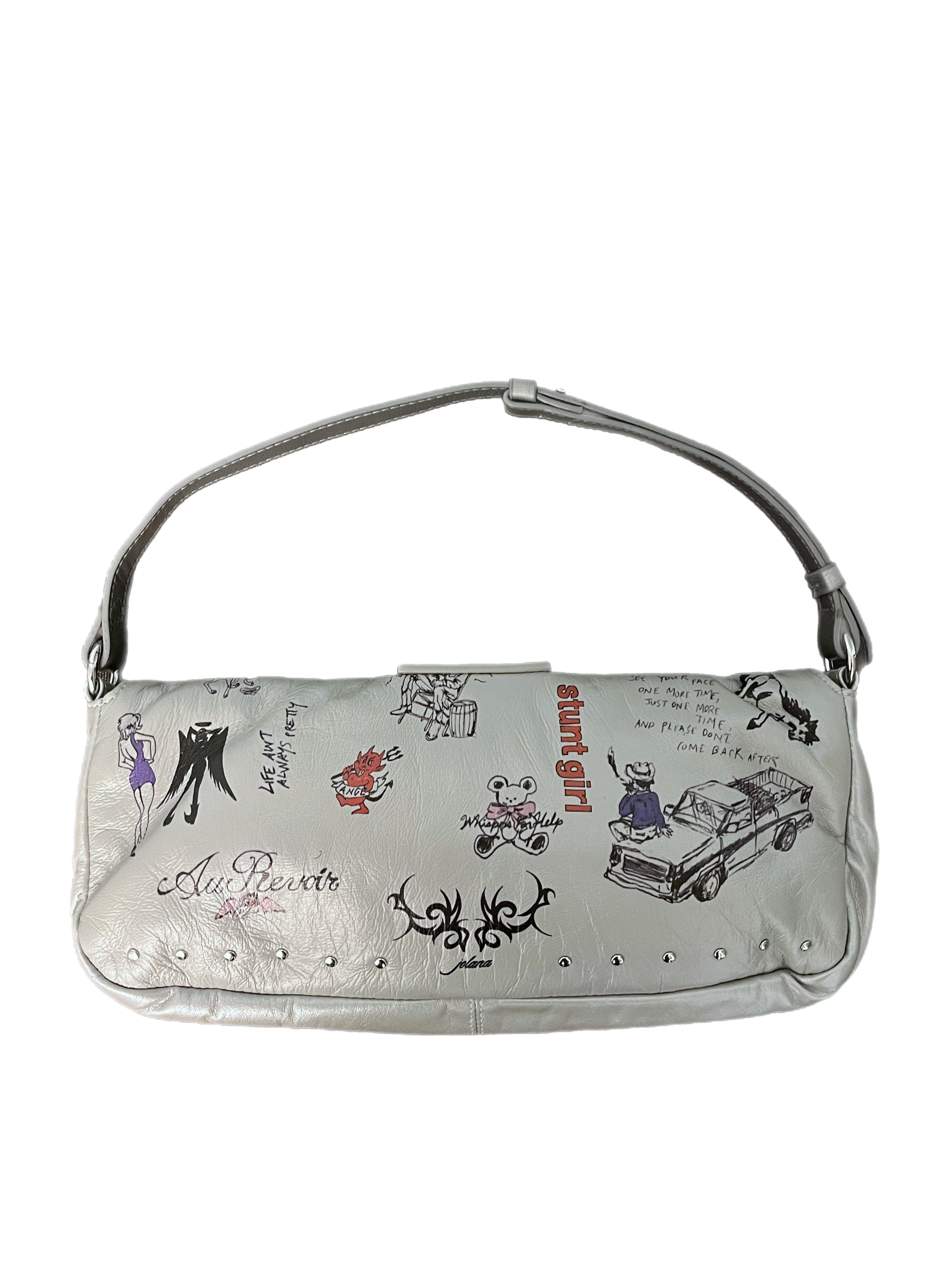 The Liv Flash Tattoo Baguette is inked with artwork by @dirtyl00ks, reimagining old-school cowboy tattoos from a pin-up muse to a cheeky tramp stamp (because why not). She’s a bold, rebellious little bag.